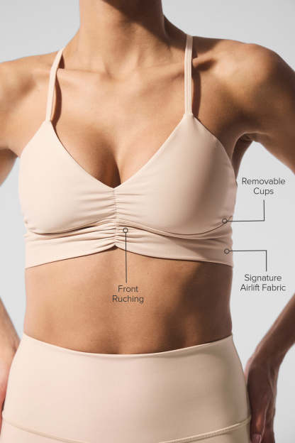 Your new favorite bra is here. The Airlift Divine Bra is the perfect piece for working out, running errands, and everything in between. Made of our signature Airlift performance fabric, this style is designed with front ruching and adjustable crisscross straps. Pair it with the Divine Legging for a chic look.