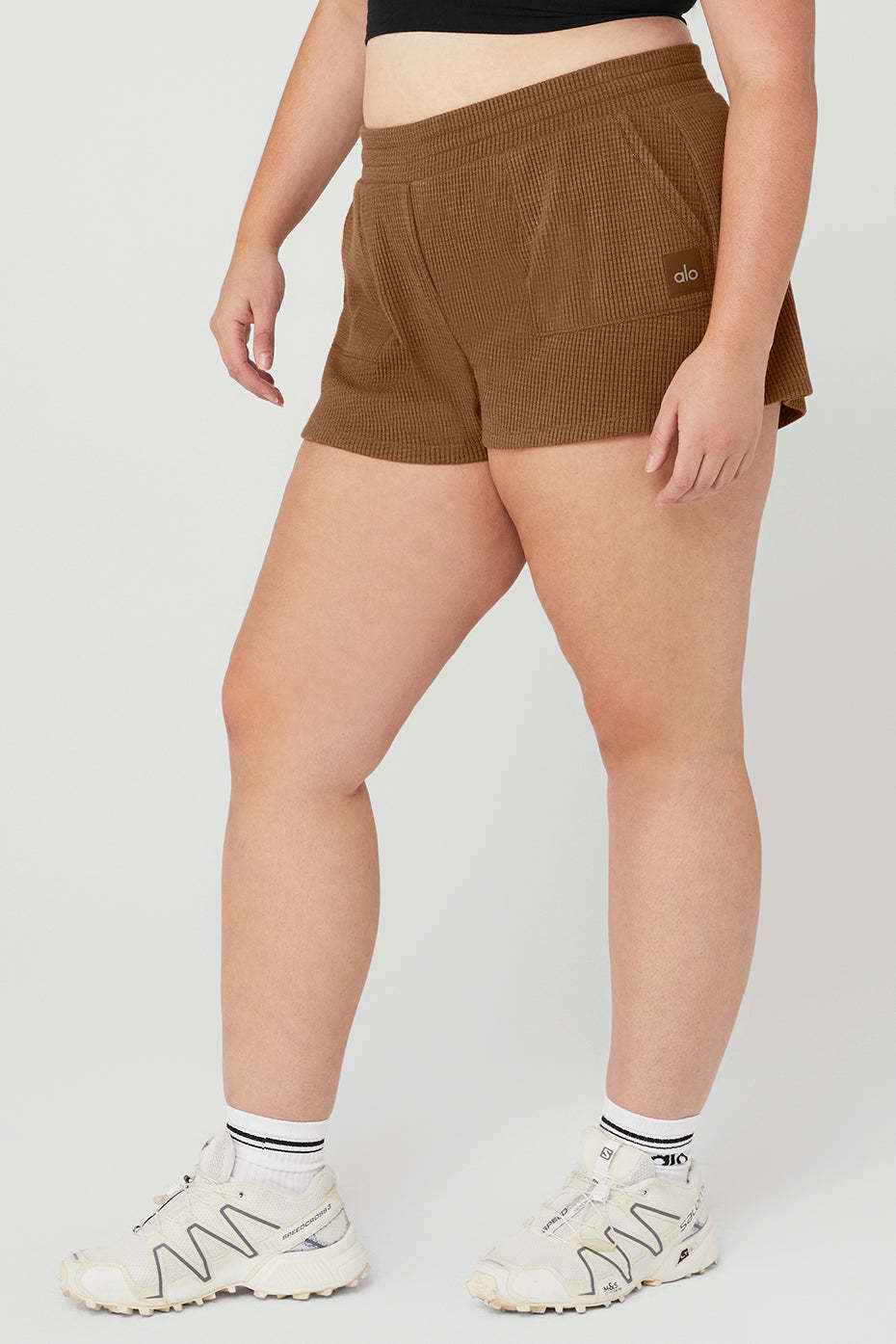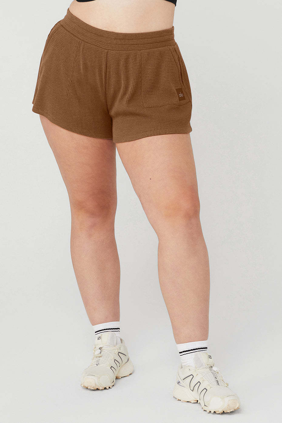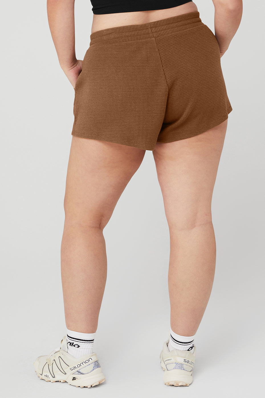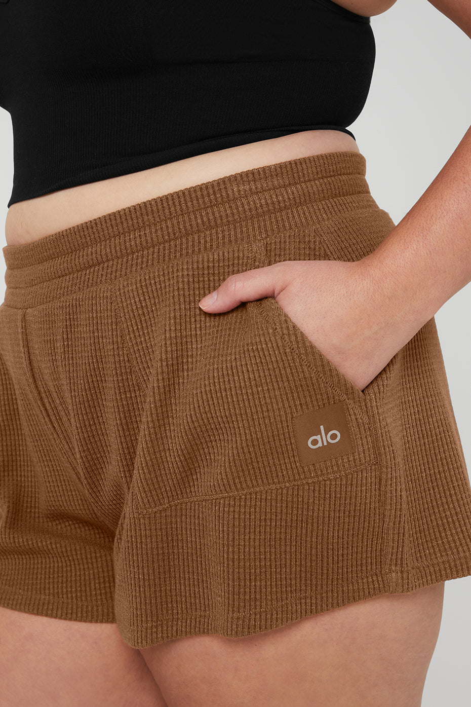 This street-to-lounge short is our new obsession. Made from cozy-luxe waffle knit, The Waffle High-Waist Weekend Escape Short features front patch pockets and interior drawcords for kicking it in cool comfort. Pair it up with any athelo hoodie or cover up.