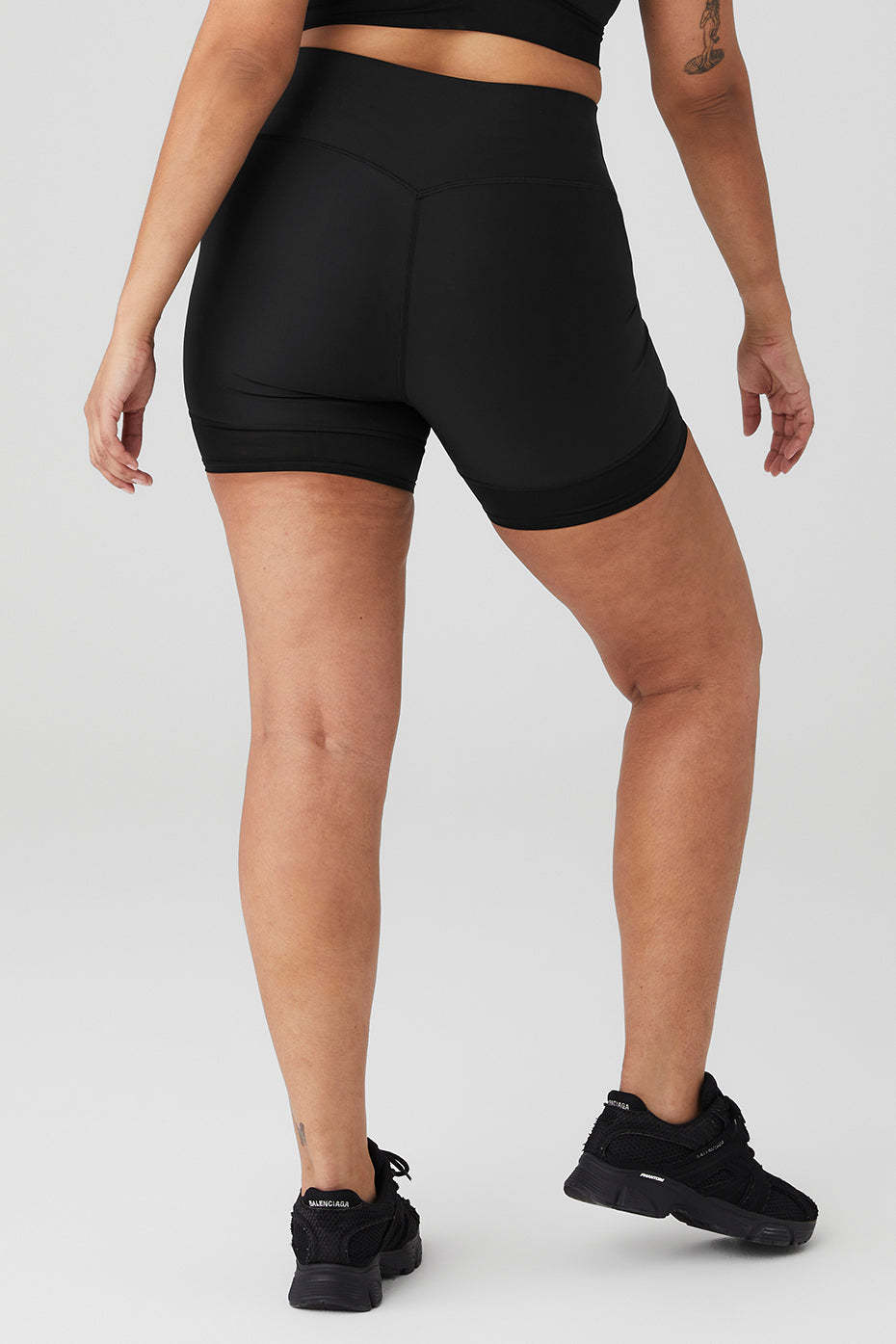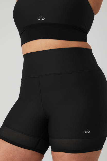 Breathable mesh & moisture-wicking Airlift the Double Trouble Biker Short combines two practice-ready fabrications into one must-have look. It*s high-waisted with sweetheart back seams and a thick, mesh hem. Pair this performance short with the matching bra or a cropped tank for practice or pavement.
