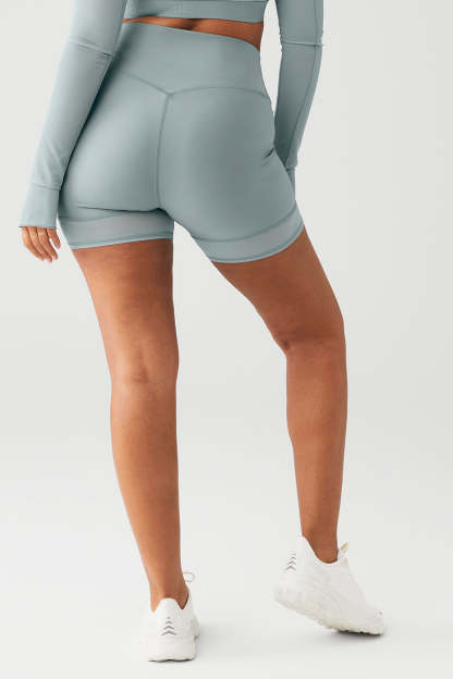 Breathable mesh & moisture-wicking Airlift the Double Trouble Biker Short combines two practice-ready fabrications into one must-have look. It*s high-waisted with sweetheart back seams and a thick, mesh hem. Pair this performance short with the matching bra or a cropped tank for practice or pavement.
