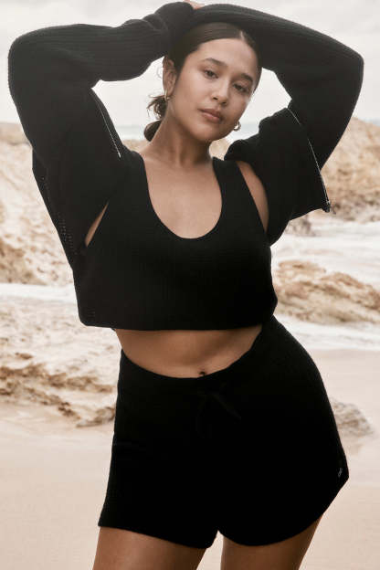 Unreal softness and an airy knit. The Cashmere High-Waist Plush Waffle Short is made with an ultra-soft lightweight cashmere yarn in a breathable, loose fit that handles sun-warmed activities like a pro. Pair with the matching Cashmere Plush Waffle Cropped Tank and serve laidback luxury all season long.