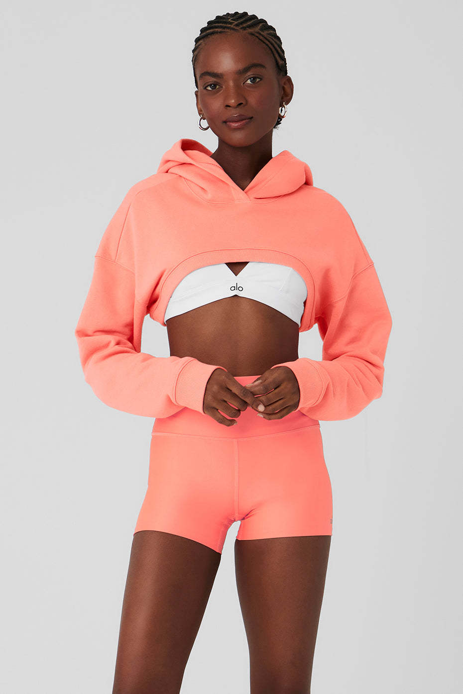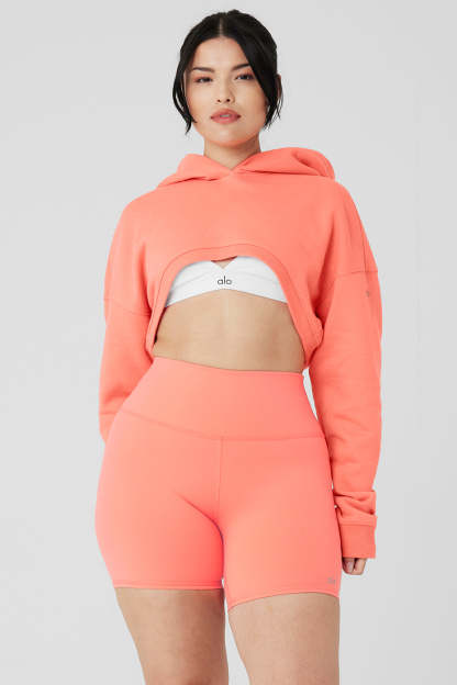 Breezy and super-soft to the touch. Meet the Cropped Shrug It Off Hoodie 〞 the just-right layering piece your closet deserves all year round. An ultra-cropped fit is perfect for showing off studio bras or bikinis on beach days, while the built-in hood provides protection when the weather shifts. Ribbed cuffs and hem are the finishing touches on this cozy, soon-to-be fave. Pair it up with sweat shorts for a complete look.