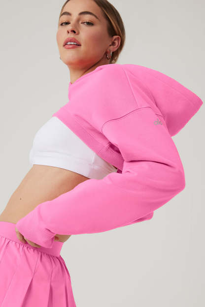 Breezy and super-soft to the touch. Meet the Cropped Shrug It Off Hoodie 〞 the just-right layering piece your closet deserves all year round. An ultra-cropped fit is perfect for showing off studio bras or bikinis on beach days, while the built-in hood provides protection when the weather shifts. Ribbed cuffs and hem are the finishing touches on this cozy, soon-to-be fave. Pair it up with sweat shorts for a complete look.