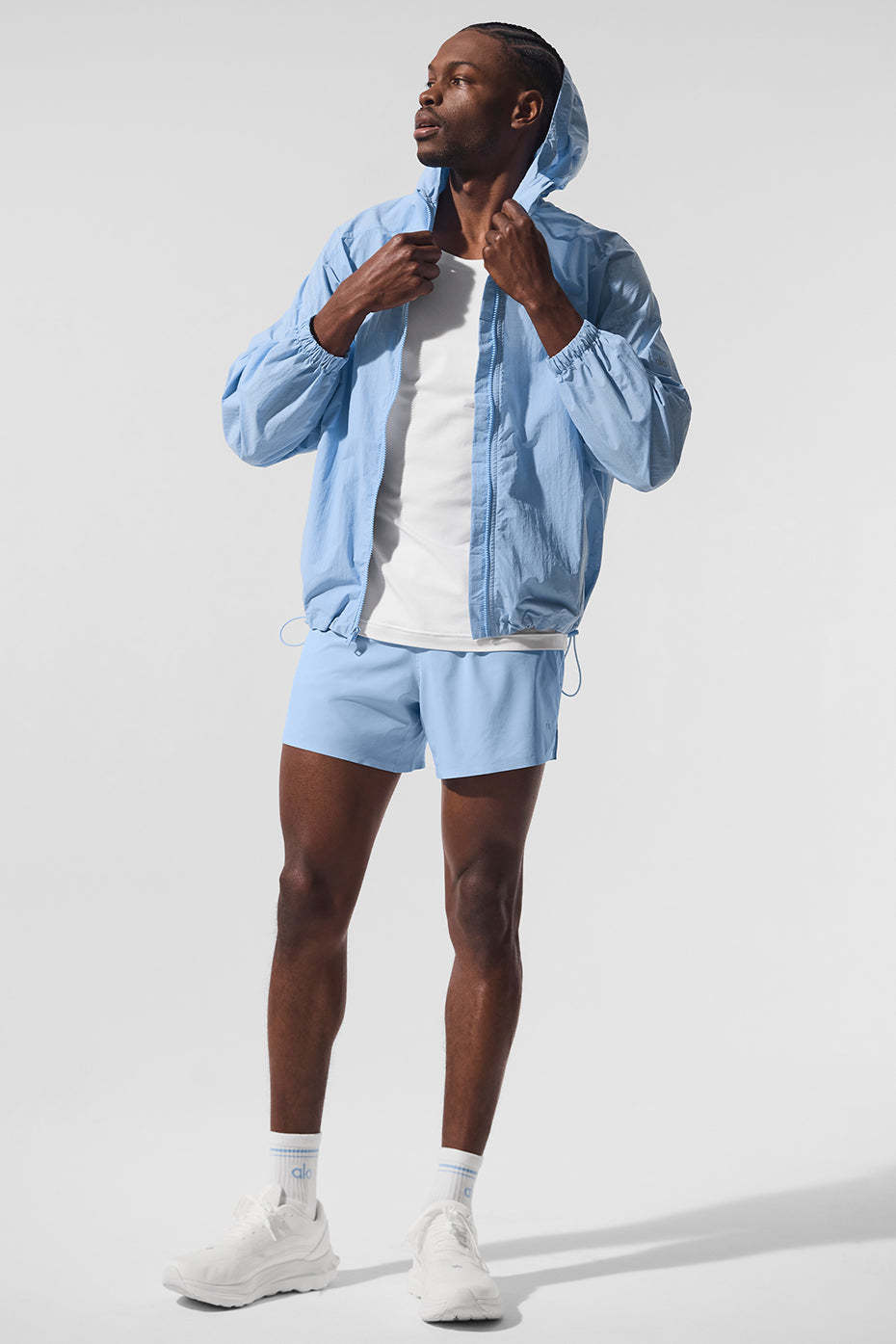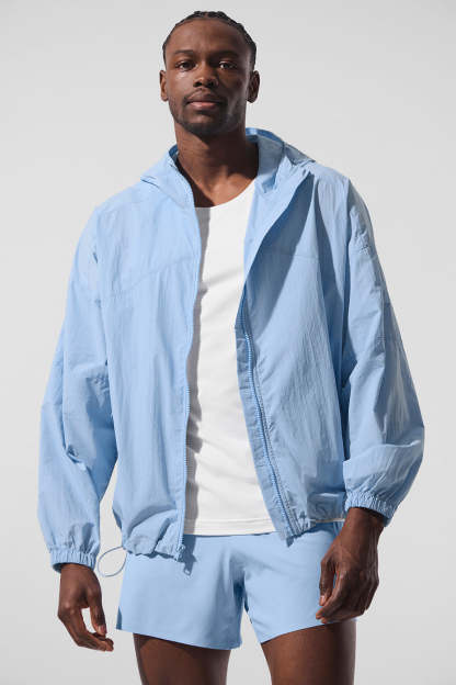 Light coverage and serious protection—that’s the Vantage Track Jacket. It has technical features like a structured hood, a full-zip front that covers the neck, cuffed sleeves, and a bungee hem that’s slightly longer in back. Fitwise, it feels cool and modern with dropped shoulders and a loose body. Wear it for running, training, or stepping outside in brisk weather.