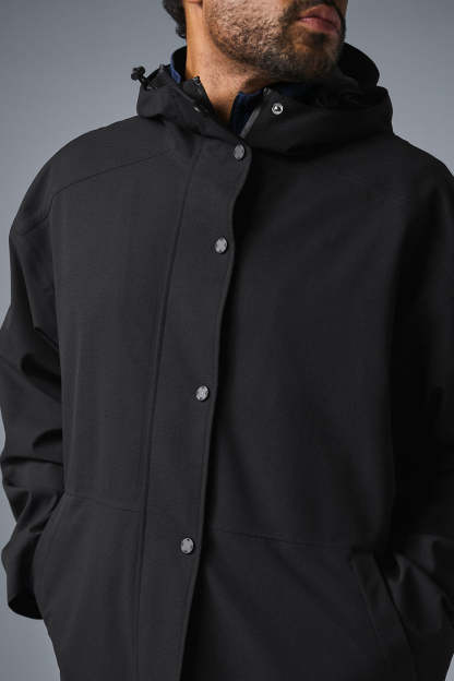 Stay dry without compromising style in this coat. It's stacked with functional features like a tall collar, a hood with bungees, zippered side pockets, and a secure zipper-and-snap front. Plus, it's made from soft, lightweight, 100 percent waterproof ripstop with a relaxed fit to accommodate movement. Cool on the streets? Yes. Suitable for stormy days? Also yes.